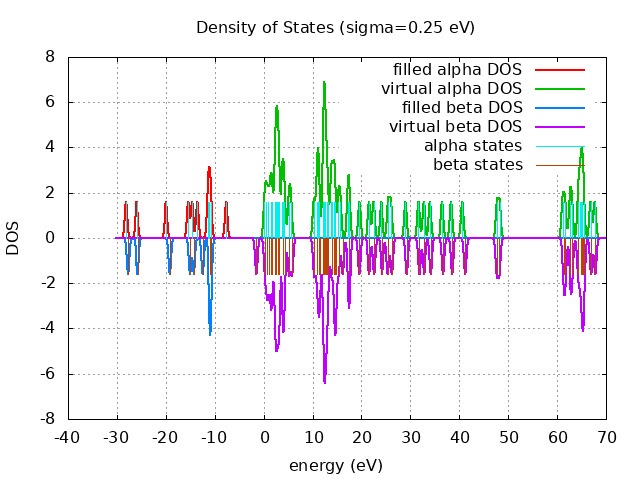 spin eig occ ---------------------------- alpha -28.13 1.00 alpha -25.97 1.00 alpha -19.97 1.00 alpha -15.44 1.00 alpha -14.64 1.00 alpha -13.54 1.00 alpha -11.42 1.00 alpha -11.09 1.00 alpha -10.81 1.00 alpha -7.64 1.00 alpha 0.18 0.00 alpha 0.55 0.00 alpha 0.97 0.00 alpha 1.44 0.00 alpha 1.71 0.00 alpha 2.29 0.00 alpha 2.50 0.00 alpha 2.61 0.00 alpha 2.76 0.00 alpha 3.00 0.00 alpha 3.10 0.00 alpha 3.73 0.00 alpha 3.99 0.00 alpha 4.24 0.00 alpha 5.16 0.00 alpha 5.54 0.00 alpha 10.27 0.00 alpha 10.86 0.00 alpha 11.16 0.00 alpha 11.23 0.00 alpha 12.12 0.00 alpha 12.29 0.00 alpha 12.34 0.00 alpha 12.50 0.00 alpha 12.58 0.00 alpha 12.86 0.00 alpha 13.09 0.00 alpha 13.79 0.00 alpha 13.96 0.00 alpha 14.38 0.00 alpha 14.52 0.00 alpha 15.29 0.00 alpha 15.69 0.00 alpha 17.21 0.00 alpha 17.47 0.00 alpha 19.59 0.00 alpha 21.56 0.00 alpha 22.48 0.00 alpha 24.05 0.00 alpha 25.46 0.00 alpha 25.99 0.00 alpha 28.98 0.00 alpha 31.65 0.00 alpha 32.74 0.00 alpha 33.99 0.00 alpha 36.49 0.00 alpha 38.30 0.00 alpha 40.60 0.00 alpha 47.69 0.00 alpha 48.25 0.00 alpha 61.13 0.00 alpha 61.60 0.00 alpha 62.61 0.00 alpha 63.02 0.00 alpha 64.33 0.00 alpha 64.64 0.00 alpha 64.98 0.00 alpha 65.10 0.00 alpha 65.46 0.00 alpha 66.83 0.00 alpha 67.69 0.00 beta -27.71 1.00 beta -25.79 1.00 beta -19.17 1.00 beta -15.07 1.00 beta -14.27 1.00 beta -12.47 1.00 beta -11.02 1.00 beta -10.94 1.00 beta -10.74 1.00 beta -1.47 0.00 beta 0.28 0.00 beta 0.72 0.00 beta 1.04 0.00 beta 1.52 0.00 beta 1.69 0.00 beta 2.33 0.00 beta 2.49 0.00 beta 2.61 0.00 beta 2.91 0.00 beta 3.09 0.00 beta 3.22 0.00 beta 3.98 0.00 beta 4.01 0.00 beta 4.28 0.00 beta 5.18 0.00 beta 5.79 0.00 beta 10.35 0.00 beta 10.94 0.00 beta 11.31 0.00 beta 11.45 0.00 beta 12.18 0.00 beta 12.32 0.00 beta 12.49 0.00 beta 12.54 0.00 beta 12.78 0.00 beta 12.91 0.00 beta 13.18 0.00 beta 13.88 0.00 beta 14.44 0.00 beta 14.67 0.00 beta 14.73 0.00 beta 15.35 0.00 beta 16.19 0.00 beta 17.39 0.00 beta 17.51 0.00 beta 19.57 0.00 beta 21.58 0.00 beta 22.60 0.00 beta 24.21 0.00 beta 25.37 0.00 beta 26.20 0.00 beta 29.23 0.00 beta 31.85 0.00 beta 32.81 0.00 beta 34.18 0.00 beta 36.70 0.00 beta 38.53 0.00 beta 41.19 0.00 beta 47.65 0.00 beta 48.21 0.00 beta 61.35 0.00 beta 61.69 0.00 beta 62.72 0.00 beta 63.08 0.00 beta 64.34 0.00 beta 64.79 0.00 beta 65.17 0.00 beta 65.27 0.00 beta 65.57 0.00 beta 66.96 0.00 beta 67.80 0.00
