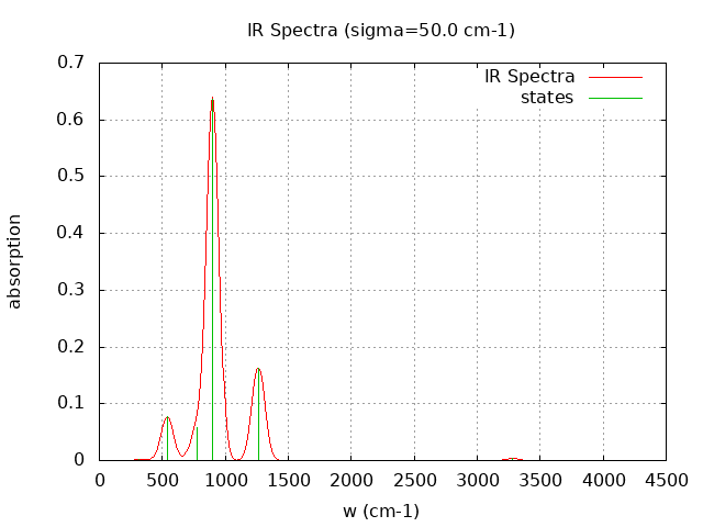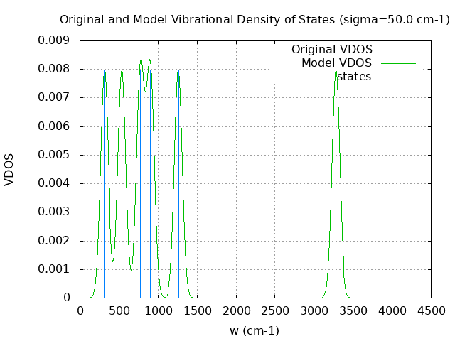 +----------------------------------------+ | Vibrational Density of States Analysis | +----------------------------------------+ Total number of frequencies = 12 Total number of negative frequencies = 0 Number of lowest frequencies = 1 (frequency threshold = 500 ) Exact dos norm = 6.000 Generating vibrational DOS Generating model vibrational DOS to have a proper norm 10.00 5.99 1.00 6.00 50.00 6.00 1.00 6.00 100.00 6.00 1.00 6.00 Generating IR Spectra Writing vibrational density of states (DOS) to vdos.dat Writing model vibrational density of states (DOS_FIXED) to vdos-model.dat Writing IR spectra to irdos.dat Temperature= 298.15 zero-point correction to energy = 10.096 kcal/mol ( 0.016089) vibrational contribution to enthalpy correction = 10.570 kcal/mol ( 0.016844) vibrational contribution to Entropy = 2.318 cal/mol-k hindered rotor enthalpy correction = 0.000 kcal/mol ( 0.000000) hindered rotor entropy correction = 0.000 cal/mol-k