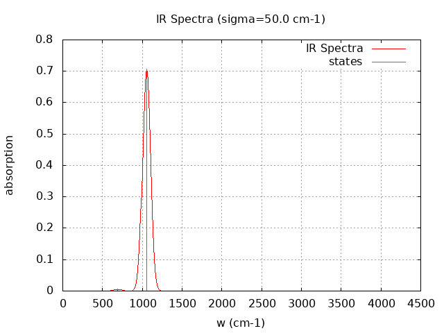 +----------------------------------------+ | Vibrational Density of States Analysis | +----------------------------------------+ Total number of frequencies = 9 Total number of negative frequencies = 0 Number of lowest frequencies = 1 (frequency threshold = 500 ) Exact dos norm = 3.000 Generating vibrational DOS Generating model vibrational DOS to have a proper norm 10.00 3.00 1.00 3.00 50.00 3.00 1.00 3.00 100.00 3.00 1.00 3.00 Generating IR Spectra Writing vibrational density of states (DOS) to vdos.dat Writing model vibrational density of states (DOS_FIXED) to vdos-model.dat Writing IR spectra to irdos.dat Temperature= 298.15 zero-point correction to energy = 2.993 kcal/mol ( 0.004770) vibrational contribution to enthalpy correction = 3.311 kcal/mol ( 0.005277) vibrational contribution to Entropy = 1.554 cal/mol-k hindered rotor enthalpy correction = 0.000 kcal/mol ( 0.000000) hindered rotor entropy correction = 0.000 cal/mol-k
