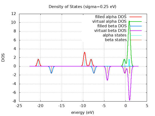 spin eig occ ---------------------------- alpha -8.09 1.00 alpha -9.61 1.00 alpha -9.61 1.00 alpha -20.49 1.00 alpha 0.98 0.00 alpha 0.98 0.00 alpha 0.96 0.00 alpha 0.89 0.00 alpha 0.81 0.00 alpha 0.81 0.00 alpha 0.70 0.00 alpha -0.29 0.00 beta -7.44 1.00 beta -17.41 1.00 beta 1.03 0.00 beta 1.00 0.00 beta 1.00 0.00 beta 0.91 0.00 beta 0.90 0.00 beta -0.16 0.00 beta -4.27 0.00 beta -4.27 0.00