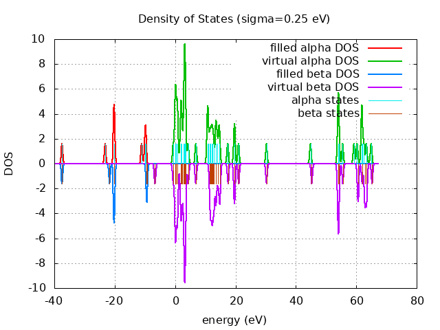 spin eig occ ---------------------------- alpha -37.47 1.00 alpha -23.17 1.00 alpha -20.22 1.00 alpha -20.22 1.00 alpha -20.22 1.00 alpha -11.08 1.00 alpha -9.88 1.00 alpha -9.77 1.00 alpha -0.60 0.00 alpha 0.05 0.00 alpha 0.13 0.00 alpha 0.14 0.00 alpha 0.26 0.00 alpha 0.72 0.00 alpha 0.80 0.00 alpha 0.80 0.00 alpha 1.78 0.00 alpha 1.91 0.00 alpha 2.17 0.00 alpha 2.19 0.00 alpha 2.89 0.00 alpha 2.89 0.00 alpha 3.09 0.00 alpha 3.21 0.00 alpha 3.23 0.00 alpha 3.27 0.00 alpha 3.44 0.00 alpha 3.45 0.00 alpha 4.31 0.00 alpha 6.88 0.00 alpha 10.72 0.00 alpha 10.75 0.00 alpha 10.90 0.00 alpha 11.40 0.00 alpha 11.74 0.00 alpha 12.09 0.00 alpha 12.38 0.00 alpha 12.74 0.00 alpha 13.51 0.00 alpha 13.54 0.00 alpha 14.01 0.00 alpha 14.55 0.00 alpha 14.72 0.00 alpha 17.43 0.00 alpha 19.66 0.00 alpha 19.66 0.00 alpha 21.01 0.00 alpha 30.27 0.00 alpha 44.82 0.00 alpha 53.96 0.00 alpha 53.97 0.00 alpha 54.20 0.00 alpha 54.21 0.00 alpha 55.49 0.00 alpha 59.26 0.00 alpha 60.29 0.00 alpha 61.76 0.00 alpha 61.85 0.00 alpha 61.91 0.00 alpha 62.49 0.00 alpha 63.36 0.00 alpha 64.95 0.00 beta -37.47 1.00 beta -21.71 1.00 beta -20.22 1.00 beta -20.22 1.00 beta -20.21 1.00 beta -9.44 1.00 beta -9.33 1.00 beta -6.65 0.00 beta -0.59 0.00 beta 0.06 0.00 beta 0.13 0.00 beta 0.15 0.00 beta 0.27 0.00 beta 0.74 0.00 beta 0.80 0.00 beta 0.84 0.00 beta 1.80 0.00 beta 1.93 0.00 beta 2.18 0.00 beta 2.34 0.00 beta 2.89 0.00 beta 2.91 0.00 beta 3.10 0.00 beta 3.21 0.00 beta 3.23 0.00 beta 3.30 0.00 beta 3.44 0.00 beta 3.48 0.00 beta 4.38 0.00 beta 6.88 0.00 beta 11.53 0.00 beta 11.73 0.00 beta 11.87 0.00 beta 12.21 0.00 beta 12.34 0.00 beta 12.49 0.00 beta 12.85 0.00 beta 12.93 0.00 beta 13.55 0.00 beta 13.57 0.00 beta 14.21 0.00 beta 14.77 0.00 beta 14.84 0.00 beta 17.56 0.00 beta 19.66 0.00 beta 19.66 0.00 beta 21.07 0.00 beta 30.27 0.00 beta 45.27 0.00 beta 53.96 0.00 beta 53.97 0.00 beta 54.21 0.00 beta 54.22 0.00 beta 55.53 0.00 beta 60.54 0.00 beta 60.69 0.00 beta 61.98 0.00 beta 62.83 0.00 beta 62.89 0.00 beta 63.38 0.00 beta 63.46 0.00 beta 65.25 0.00