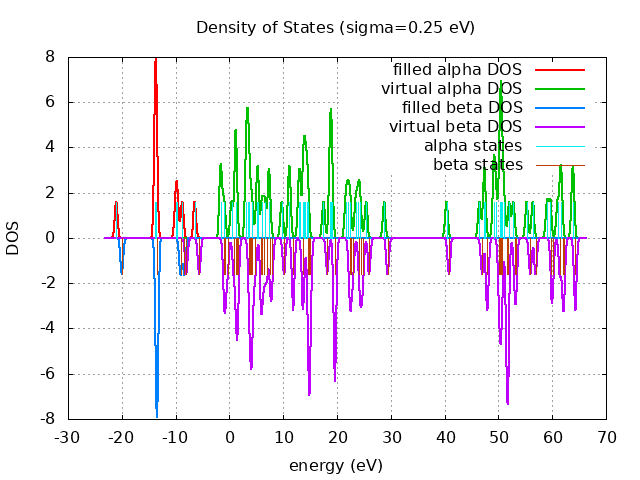 spin eig occ ---------------------------- alpha -21.05 1.00 alpha -13.75 1.00 alpha -13.70 1.00 alpha -13.68 1.00 alpha -13.67 1.00 alpha -13.67 1.00 alpha -9.99 1.00 alpha -9.65 1.00 alpha -8.78 1.00 alpha -6.45 1.00 alpha -1.62 0.00 alpha -1.59 0.00 alpha -0.99 0.00 alpha 0.39 0.00 alpha 1.17 0.00 alpha 1.19 0.00 alpha 1.20 0.00 alpha 3.14 0.00 alpha 3.16 0.00 alpha 3.42 0.00 alpha 3.46 0.00 alpha 3.74 0.00 alpha 4.22 0.00 alpha 5.19 0.00 alpha 5.24 0.00 alpha 6.06 0.00 alpha 6.58 0.00 alpha 7.29 0.00 alpha 7.45 0.00 alpha 9.71 0.00 alpha 11.12 0.00 alpha 11.14 0.00 alpha 12.92 0.00 alpha 13.07 0.00 alpha 13.76 0.00 alpha 13.82 0.00 alpha 14.08 0.00 alpha 14.34 0.00 alpha 14.59 0.00 alpha 17.49 0.00 alpha 18.73 0.00 alpha 18.74 0.00 alpha 18.97 0.00 alpha 18.98 0.00 alpha 21.66 0.00 alpha 22.04 0.00 alpha 22.44 0.00 alpha 23.49 0.00 alpha 23.95 0.00 alpha 24.31 0.00 alpha 25.40 0.00 alpha 28.75 0.00 alpha 40.35 0.00 alpha 46.47 0.00 alpha 47.34 0.00 alpha 47.44 0.00 alpha 49.13 0.00 alpha 49.18 0.00 alpha 49.57 0.00 alpha 50.23 0.00 alpha 50.38 0.00 alpha 50.40 0.00 alpha 50.58 0.00 alpha 50.63 0.00 alpha 51.05 0.00 alpha 52.00 0.00 alpha 52.77 0.00 alpha 55.24 0.00 alpha 56.39 0.00 alpha 59.06 0.00 alpha 59.64 0.00 alpha 61.00 0.00 alpha 61.63 0.00 alpha 61.64 0.00 alpha 63.81 0.00 alpha 63.85 0.00 beta -20.00 1.00 beta -13.53 1.00 beta -13.48 1.00 beta -13.47 1.00 beta -13.46 1.00 beta -13.46 1.00 beta -9.08 1.00 beta -8.36 1.00 beta -8.02 0.00 beta -5.63 0.00 beta -0.91 0.00 beta -0.88 0.00 beta -0.35 0.00 beta 0.82 0.00 beta 1.32 0.00 beta 1.46 0.00 beta 1.56 0.00 beta 3.73 0.00 beta 3.82 0.00 beta 4.03 0.00 beta 4.22 0.00 beta 4.25 0.00 beta 4.79 0.00 beta 5.92 0.00 beta 5.98 0.00 beta 6.48 0.00 beta 6.96 0.00 beta 7.64 0.00 beta 7.90 0.00 beta 10.15 0.00 beta 11.84 0.00 beta 11.87 0.00 beta 13.64 0.00 beta 13.73 0.00 beta 14.70 0.00 beta 14.74 0.00 beta 14.83 0.00 beta 14.95 0.00 beta 15.06 0.00 beta 18.18 0.00 beta 19.58 0.00 beta 19.60 0.00 beta 19.62 0.00 beta 19.65 0.00 beta 22.35 0.00 beta 22.54 0.00 beta 22.95 0.00 beta 24.16 0.00 beta 24.47 0.00 beta 24.78 0.00 beta 25.98 0.00 beta 29.41 0.00 beta 40.80 0.00 beta 46.97 0.00 beta 47.93 0.00 beta 47.94 0.00 beta 50.16 0.00 beta 50.25 0.00 beta 50.55 0.00 beta 50.63 0.00 beta 51.54 0.00 beta 51.61 0.00 beta 51.70 0.00 beta 51.79 0.00 beta 51.81 0.00 beta 53.07 0.00 beta 53.27 0.00 beta 55.92 0.00 beta 56.93 0.00 beta 59.87 0.00 beta 60.10 0.00 beta 61.44 0.00 beta 62.10 0.00 beta 62.11 0.00 beta 64.29 0.00 beta 64.30 0.00